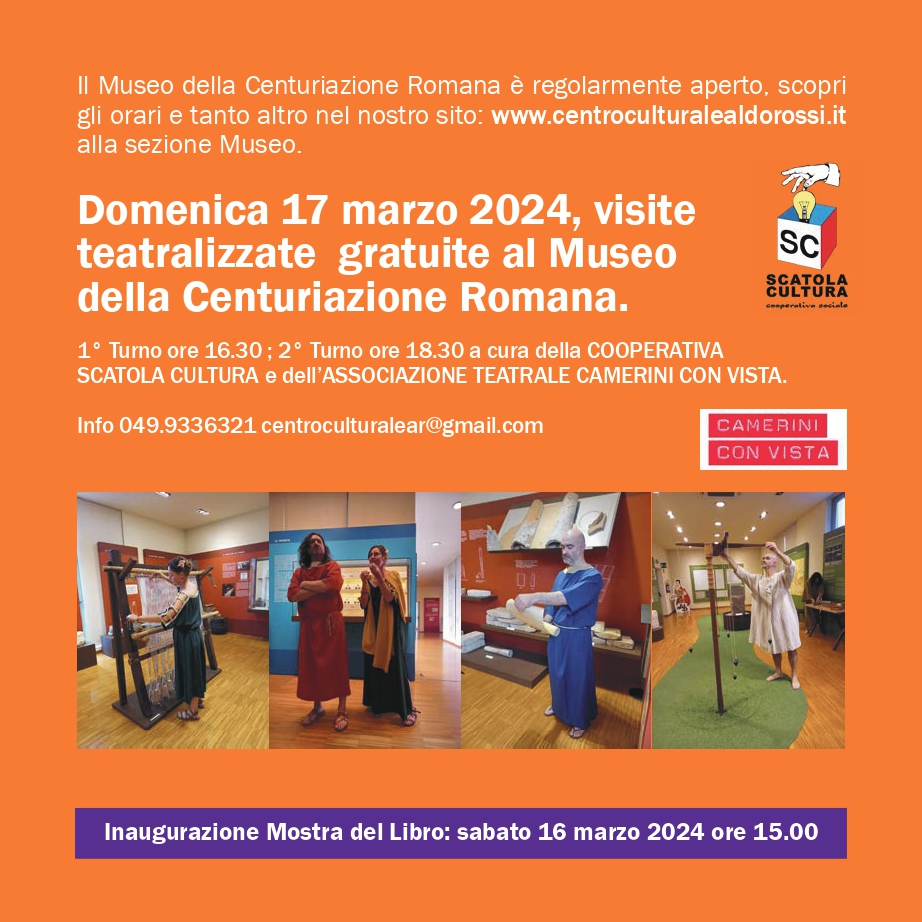 Centro culturale Aldo Rossi viale Europa, 12, Borgoricco, Padova, Italy37^ MOSTRA DEL LIBRO PRESSO IL CENTRO CULTURALE A. ROSSI Dal 15 al 24 marzo 2024 Incontri con gli autori, Visite guidate al Museo della Centuriazione, Borgoricco Comics in data 24 marzo 2024 , concerto live, Gonfiabili e food Truck. In allegato il depliant con tutto il programma.