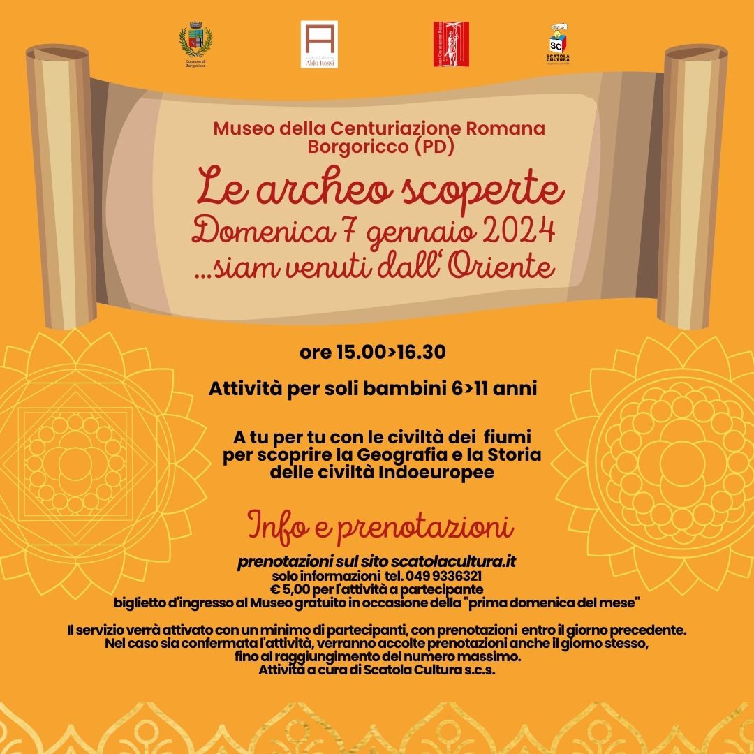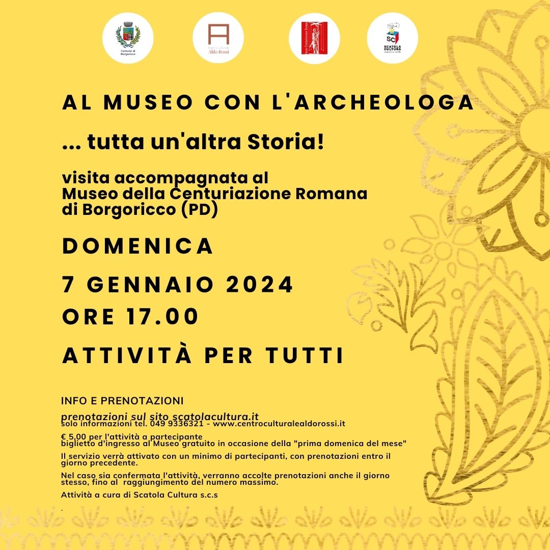 Museo della Centuriazione Romana Viale Europa,12, Borgoricco, Padova, ItaliaDOMENICA 17 DICEMBRE 2023 ORE 16:00 IL TEMPO DELLA LUCE Visita tematica al Museo Museo della Centuriazione romana di Borgoricco costi: € 5,00 a partecipante oltre al biglietto di ingresso al Museo