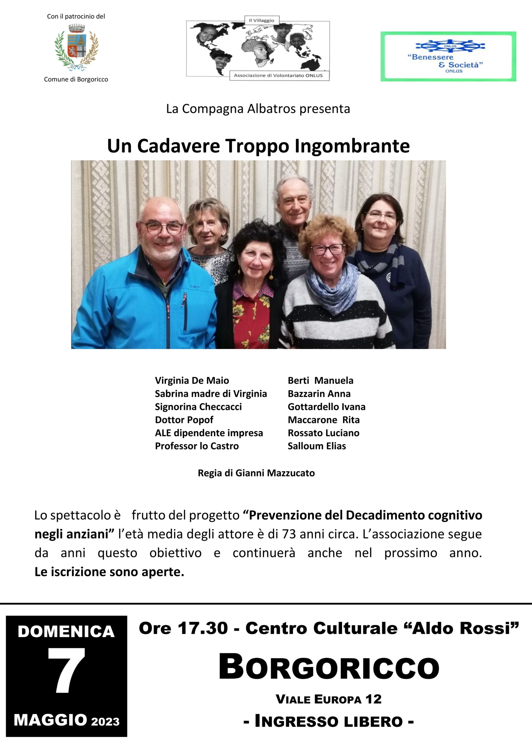 Lo spettacolo è frutto del progetto “Prevenzione del Decadimento cognitivo negli anziani” l’età media degli attore è di 73 anni circa. L’associazione segue da anni questo obiettivo e continuerà anche nel prossimo anno.